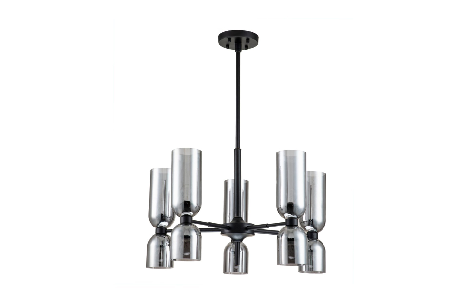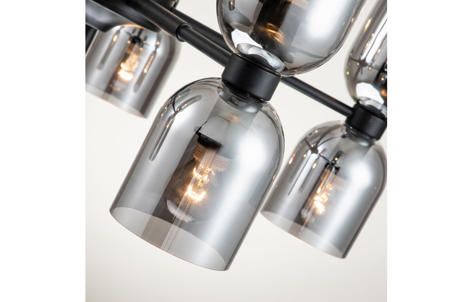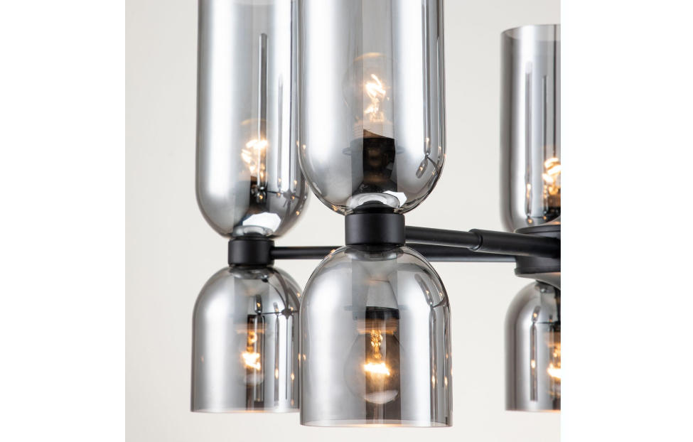 Подвесная люстра коллекции Amusing с серыми зеркальными плафонами и чёрным каркасом. Двойные плафоны оригинальной формы и разной высоты хорошо рассеивают свет ламп, направленных вверх и вниз. Чёрная коллекция станет красивым дополнением к современному интерьеру и интерьеру в стиле лофт. Высоту люстр можно менять благодаря составному центральному штоку.