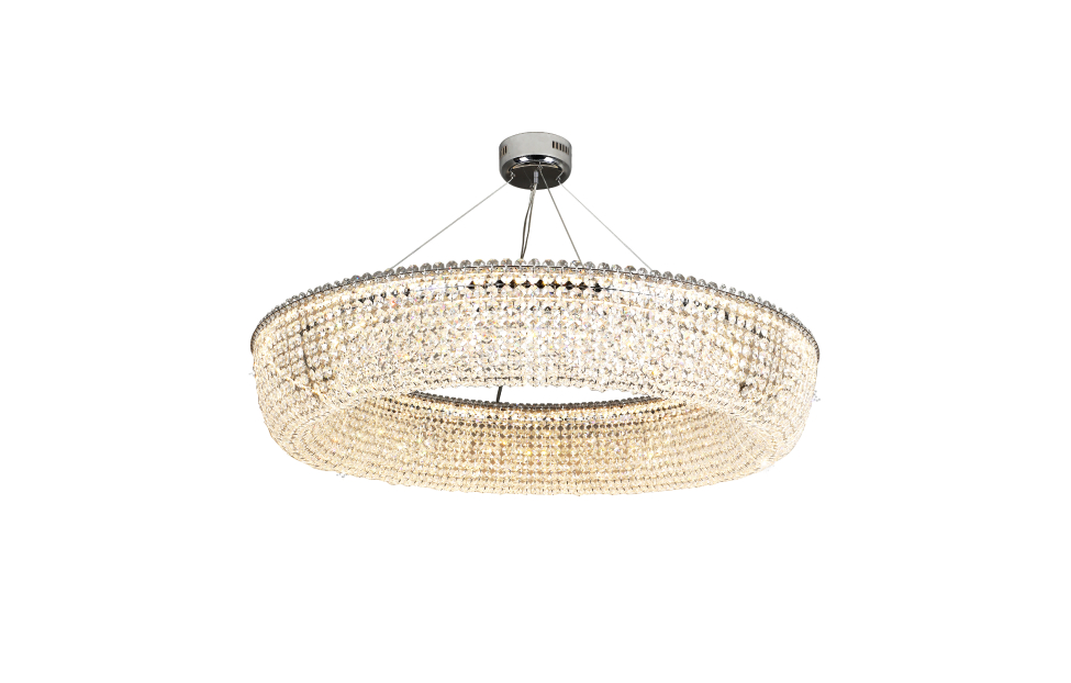 Коллекция Estrada имеет кольцевое строение. На каркас с внешней и внутренней стороны крепятся нити кристаллов, создавая эффектное оформление. Для освещения используется LED-лента с диммируемыми светодиодами, которая проходит внутри кольца. Игра света сквозь нити кристаллов добавляет роскоши и элегантности люстре. Металлический хромированный каркас, хрусталь высшего качества, встроенная лента со светодиодами внутри кольца, регулируемая высота, пульт управления.