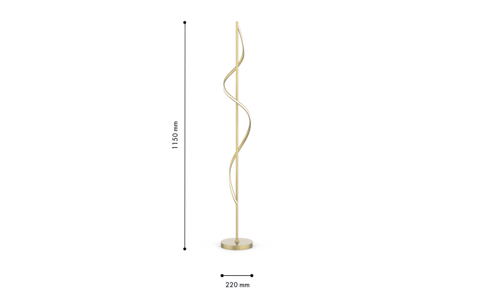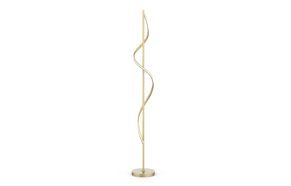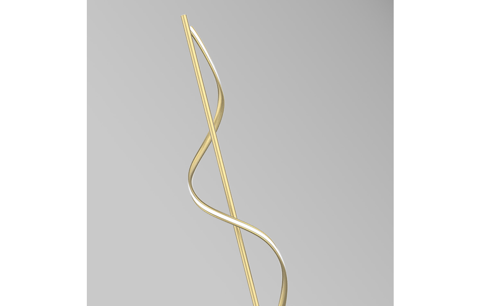 Напольный светильник Locket представлен в цвете матовое золото. Вытянутый жесткий профиль декорирован гибким профилем, который оснащен LED-лентой и мягкой волной оборачивается вокруг жесткого профиля. Выключатель на проводе.