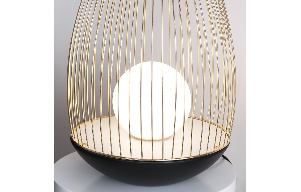 Коллекция Core — это гармоничное сочетание прочности металла и нежности стеклянных плафонов. Стеклянный выдувной плафон заключен в проволочный каркас из тонких, спаянных между собой металлических трубочек, создавая эффект золотой клетки, защищающей светящийся шар. Настольная лампа диаметром 30 см, стеклянный выдувной плафон заключен в проволочный каркас из тонких, спаянных между собой металлических трубочек, каркас в черном цвете с золотым, модуль LED.
