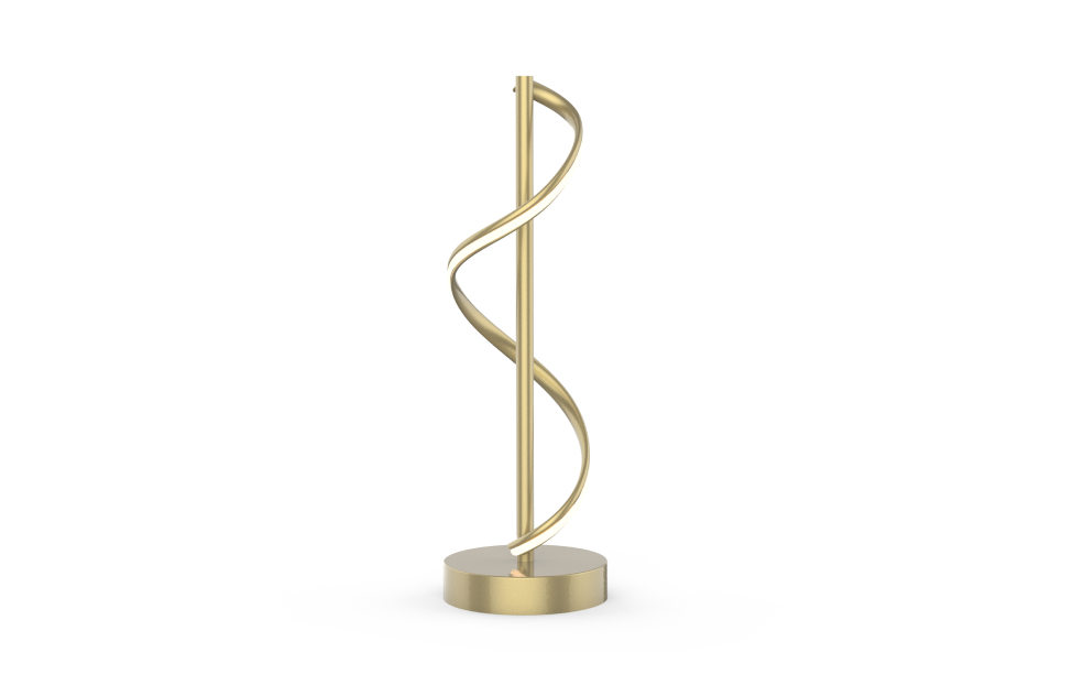 Настольный светильник Locket представлен в цвете матовое золото. Вытянутый жесткий профиль декорирован гибким профилем, который оснащен LED-лентой и мягкой волной оборачивается вокруг жесткого профиля. Выключатель на проводе.
