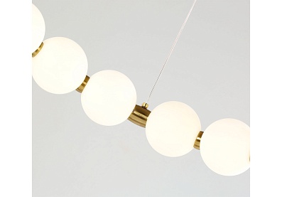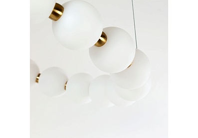 Gubbare – светодиодная коллекция в виде белоснежного ожерелья на золотом каркасе. Плафоны выполнены из акриловых шаров белого цвета высокого качества. Они пропускают и рассеивают свет ровнее и мягче, чем обычное стекло. И в отличие от него, мало весят, легки в уходе и невероятно прочны (не бьются). Это незаменимая модель, которая станет не только новым арт-объектом интерьера, но и прекрасно его осветит. Не слепит глаз. Подвесные люстры можно регулировать по высоте.