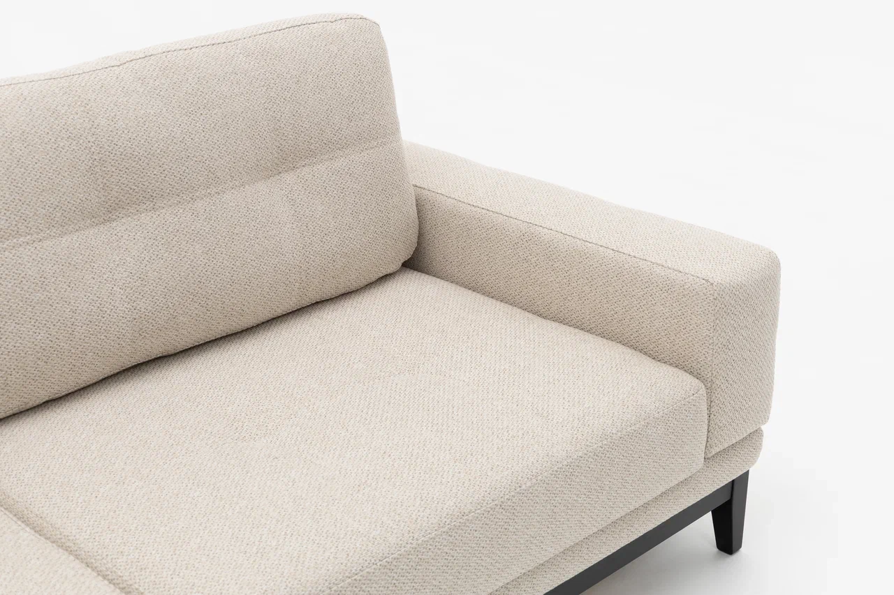 – описание: размер спального места 148 х 196 см, материал обивки рогожка, размер 89x240x100 см, цвет меланж/айвори (tisser 01).