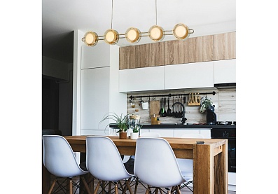 Люстра Yo-yo 4334-8P от немецкой компании Favourite - это удивительное объединение высокого качества и дизайна осветительного прибора. Металлический каркас золотого цвета и акриловые белые плафоны отлично дополнят интерьер гостиной, спальни, кухни. При использовании 8 ламп по 4 Вт, модель Yo-yo 4334-8P может осветить 15 м2 (лампочки входят в комплект поставки). Люстра может использоваться на натяжном потолке.