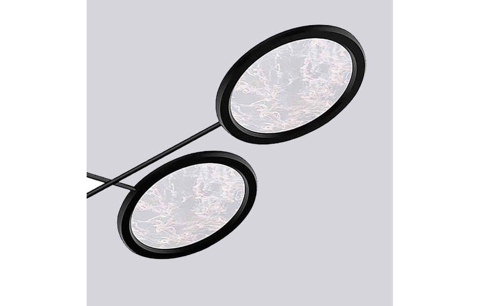 При создании коллекции светильников Imma вдохновлялись пейзажной живописью, тушью. Светильники задуманы как световые скульптуры с чувственными, завораживающими рисунками, которые, пропуская свет, создают неповторимые цветовые переходы. Металлический каркас в черном цвете, плафон из акрила с эффектом дыма, LED-лента расположена по внутреннему периметру плафона, регулируемая высота.