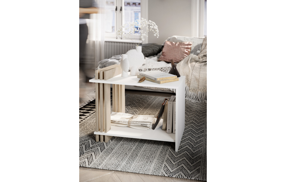 Купить Стол журнальный Троя Белый, Гикори Рокфорд в интернет-магазине мебели «Ангстрем»
