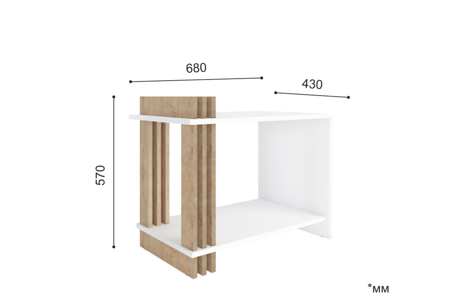 – описание: назначение для дома, размер 57x68x43 см, стиль минимализм, скандинавский, современный, цвет белый, дуб бунрати.