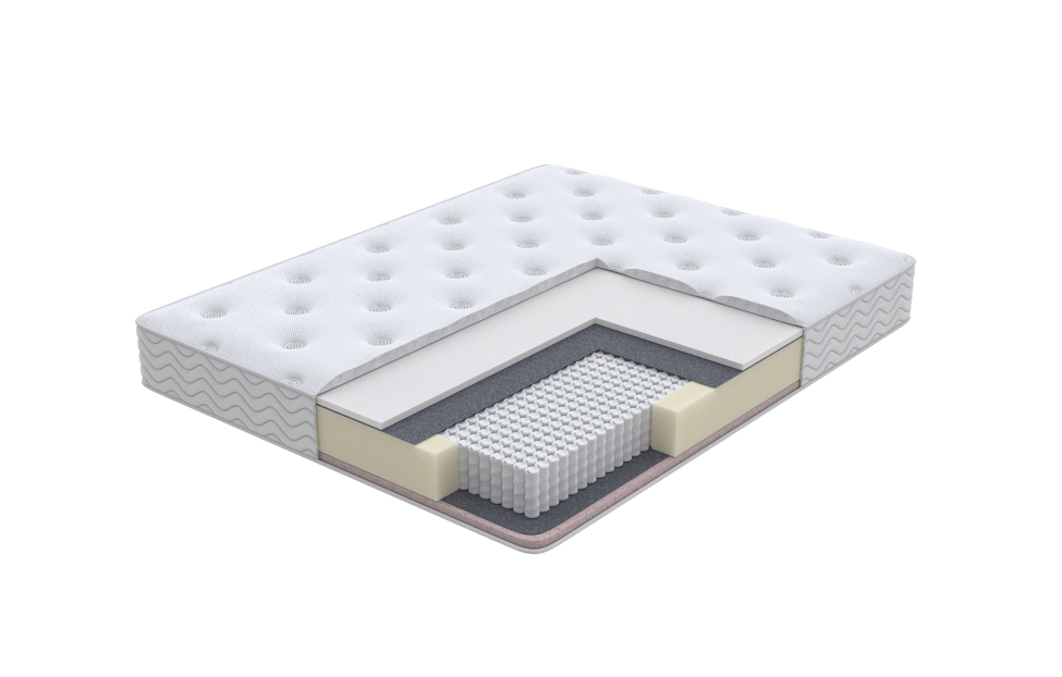 Матрас двусторонний, с разной жесткостью: ниже средней/средняя. Позволяет выбирать наиболее комфортные условия для отдыха в зависимости от настроения и самочувствия. В основе матраса – интеллектуальный блок независимых пружин 1000 пружин на спальное место. В сочетании с наполнителями Неолатекс и Эко ППУ он делает спальное место невероятно комфортным и обеспечивает необходимую поддержку каждому участку тела спящего. Чехол матраса выполнен из трикотажной ткани, простеганный на дополнительном слое Ортофом.
