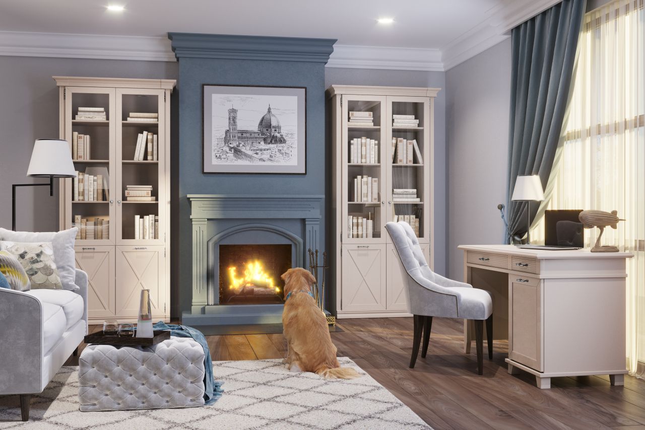 Вместительная функциональная мебель в стильном светлом оттенке подойдет для оснащения личного кабинета в стиле кантри, прованс или классика. В объемных застекленных шкафах можно разместить домашнюю библиотеку и документы, а добротный стол с выдвижными ящиками обеспечит необходимую рабочую атмосферу.