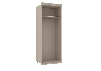 Традиционные декоративные элементы — карнизы, колонны, цоколь, профиль по периметру — добавляют интерьеру солидности и сдержанности. Регулируемые металлические опоры шкафов позволяют установить меблировку даже на неровное напольное покрытие. Массивные ножки стола подчеркивают общий стиль.