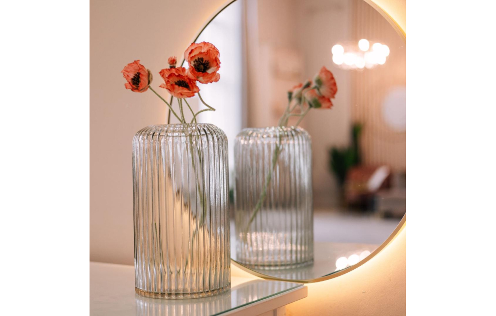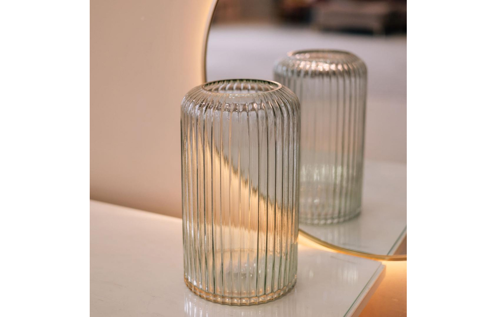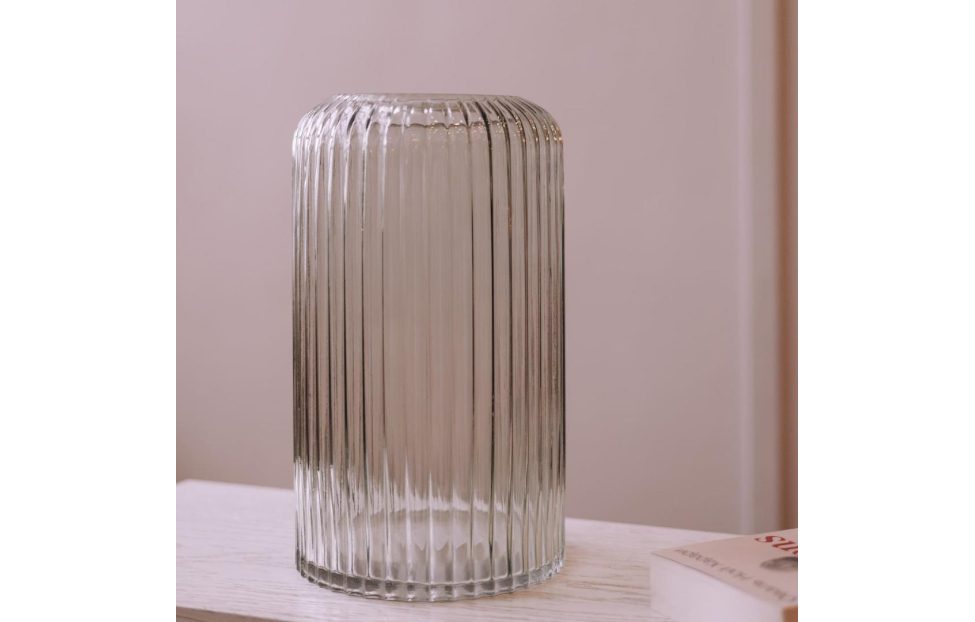 Чаще всего, вазу используют, как сосуд для живых цветов или растений. Декоративная ваза из рельефного стекла может использоваться, как самостоятельный элемент декора. Прекрасно смотрится с большими букетами, единичными цветами, сухоцветами или декоративными растениями. Добавит легкости и преобразит пространство. Лаконичный дизайн, актуальный серый цвет и привлекательная форма идеально впишется почти в любой интерьер.