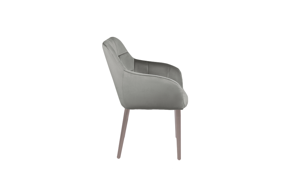 Стул-кресло Отэм прекрасно впишется в любой интерьер и комнату. Такой стул можно использовать как в качестве обеденного стула, так и в виде рабочего кресла к письменному столу. Обивка из велюра в актуальном сером оттенке прекрасно гармонирует с металлическими ножками черного цвета. Такие стулья украсят современные интерьеры, а также пространства в стиле эклектики.