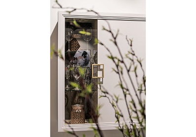 - Шкаф настенный с одним глухим фасадом и одним рамочным со вставкой стекло тонированное;