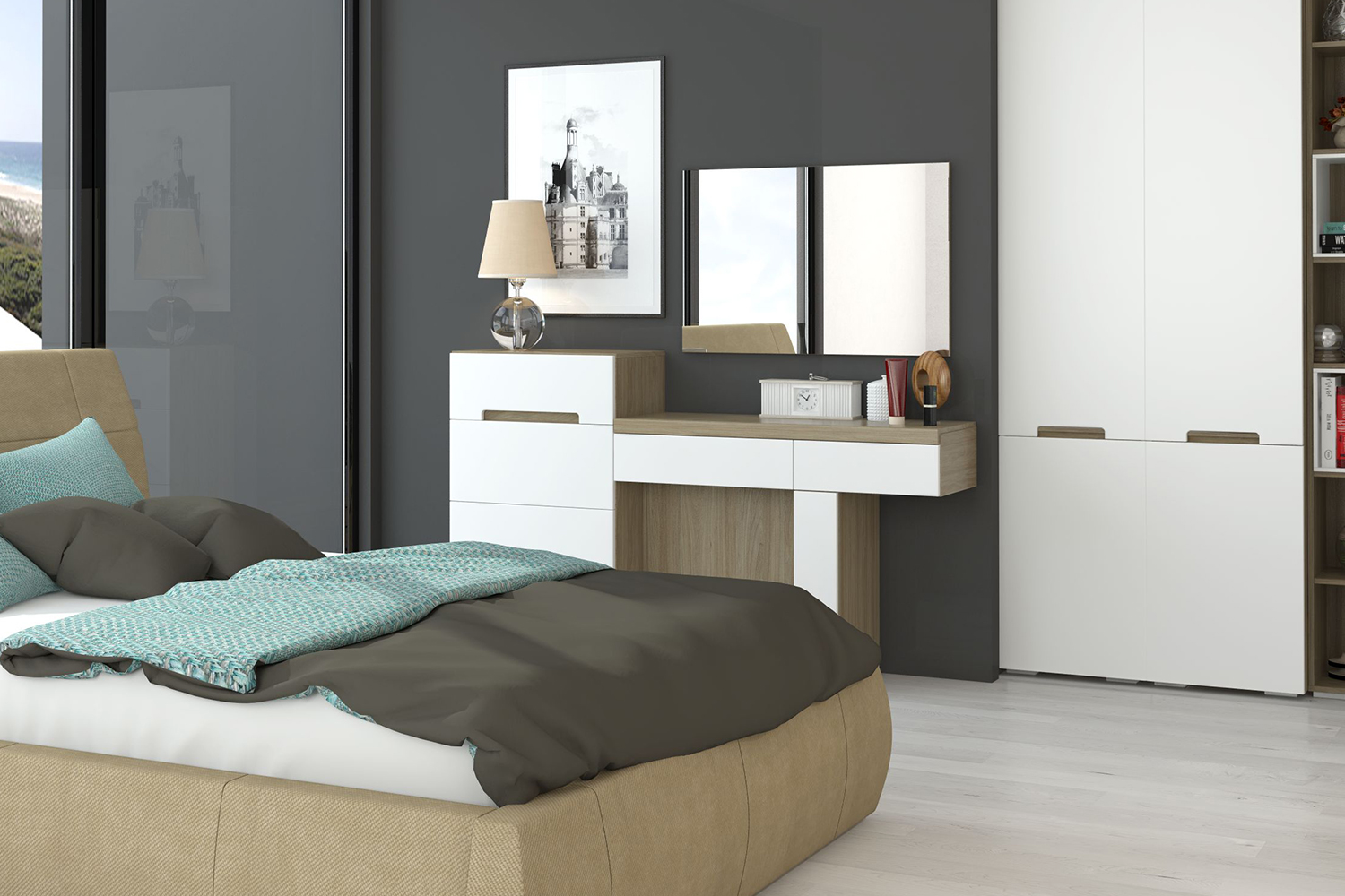 – описание: назначение для спальни, размер 80.4x105.1x41.3 см, цвет швейцарский вяз, белый, стиль современный, минимализм.