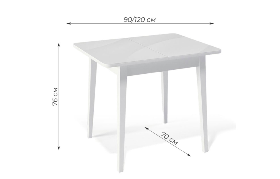 Стол обеденный Орпен квадратный раздвижной 900М опоры белые, столешница - стекло белое глянец.