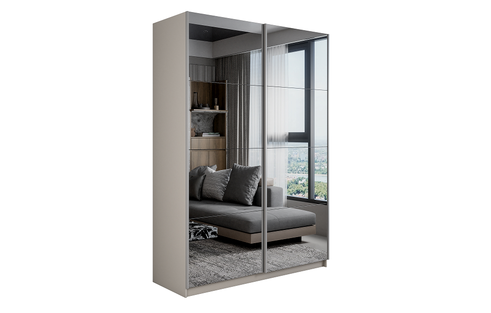 Шкаф-купе Lux 1400х2300х570, зеркальные фасады / Кашемир