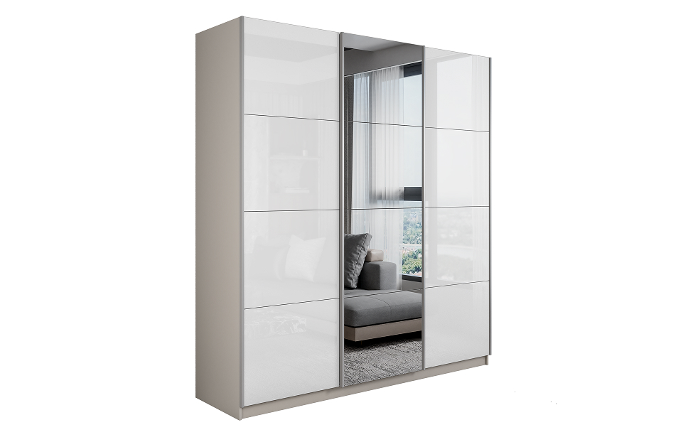 Шкаф-купе Lux 210х230х57 кашемир Белый глянец/Зеркало/Белый глянец