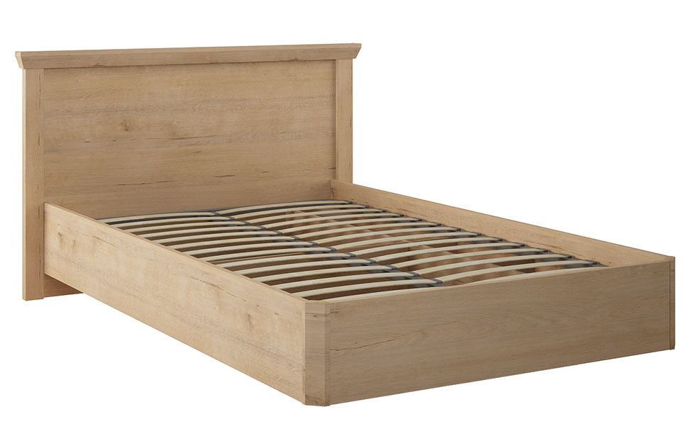 Стильная полутораспальная модель, выполненная в нейтральном светлом оттенке «дуб бунратти», воплощает лучшие традиции современного минимализма. Теплая древесная фактура разбавит темную палитру лофта и хорошо впишется в скандинавский интерьер. Высокое изголовье венчает декоративный карниз со скошенными краями, а закругленные края корпуса из ЛДСП гарантируют безопасную эксплуатацию в ночное время.