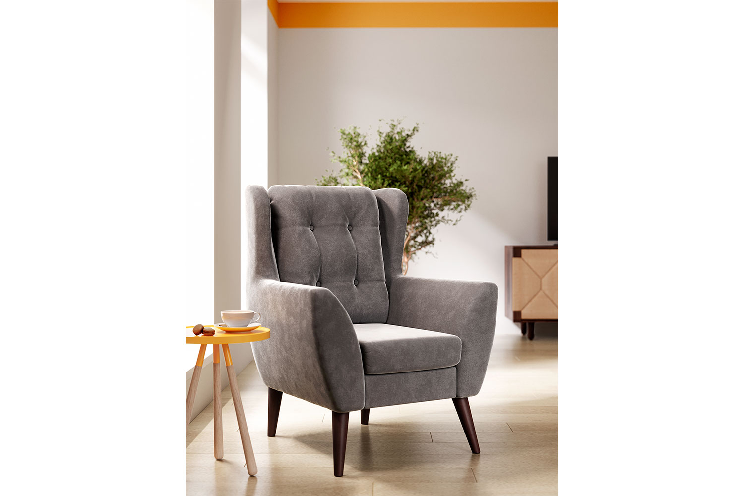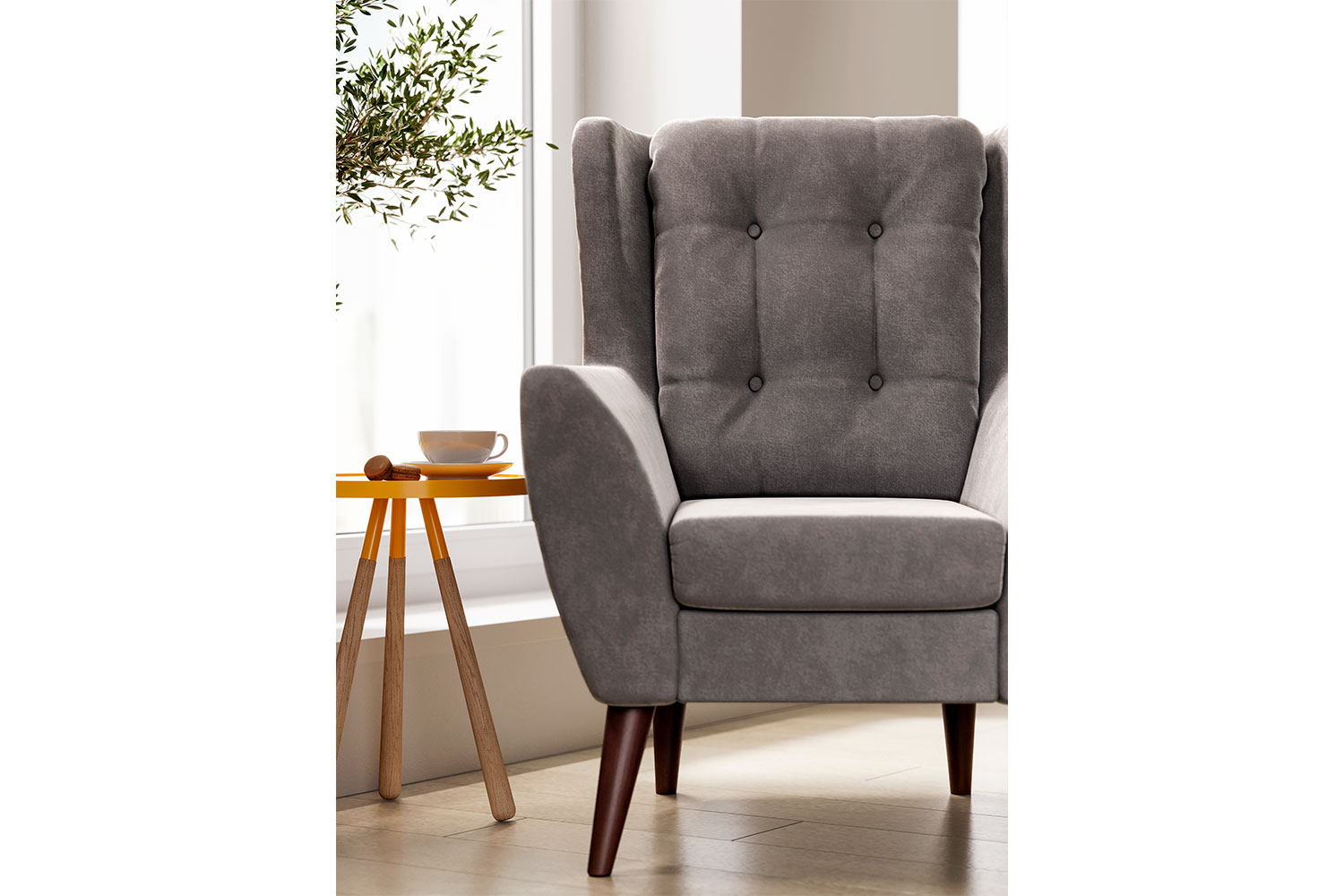 – описание: стиль скандинавский, лофт, современный, размер 107x84x93 см, цвет светло-серый (velutto 12), материал обивки велюр.
