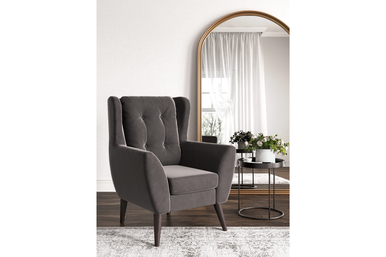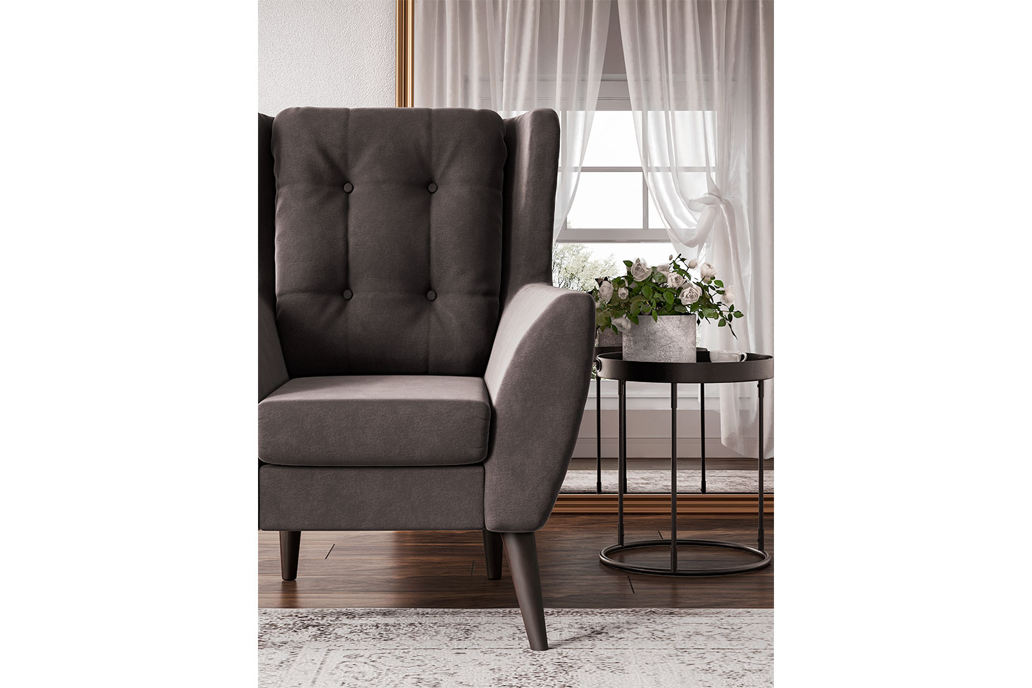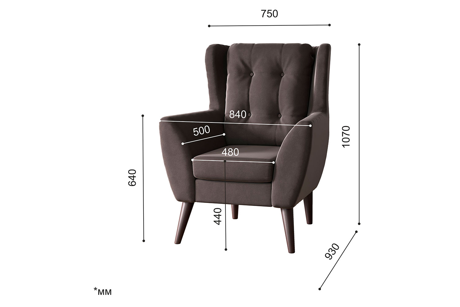 – описание: размер 107x84x93 см, материал обивки велюр, цвет коричневый (velutto 19), стиль скандинавский, лофт, современный.