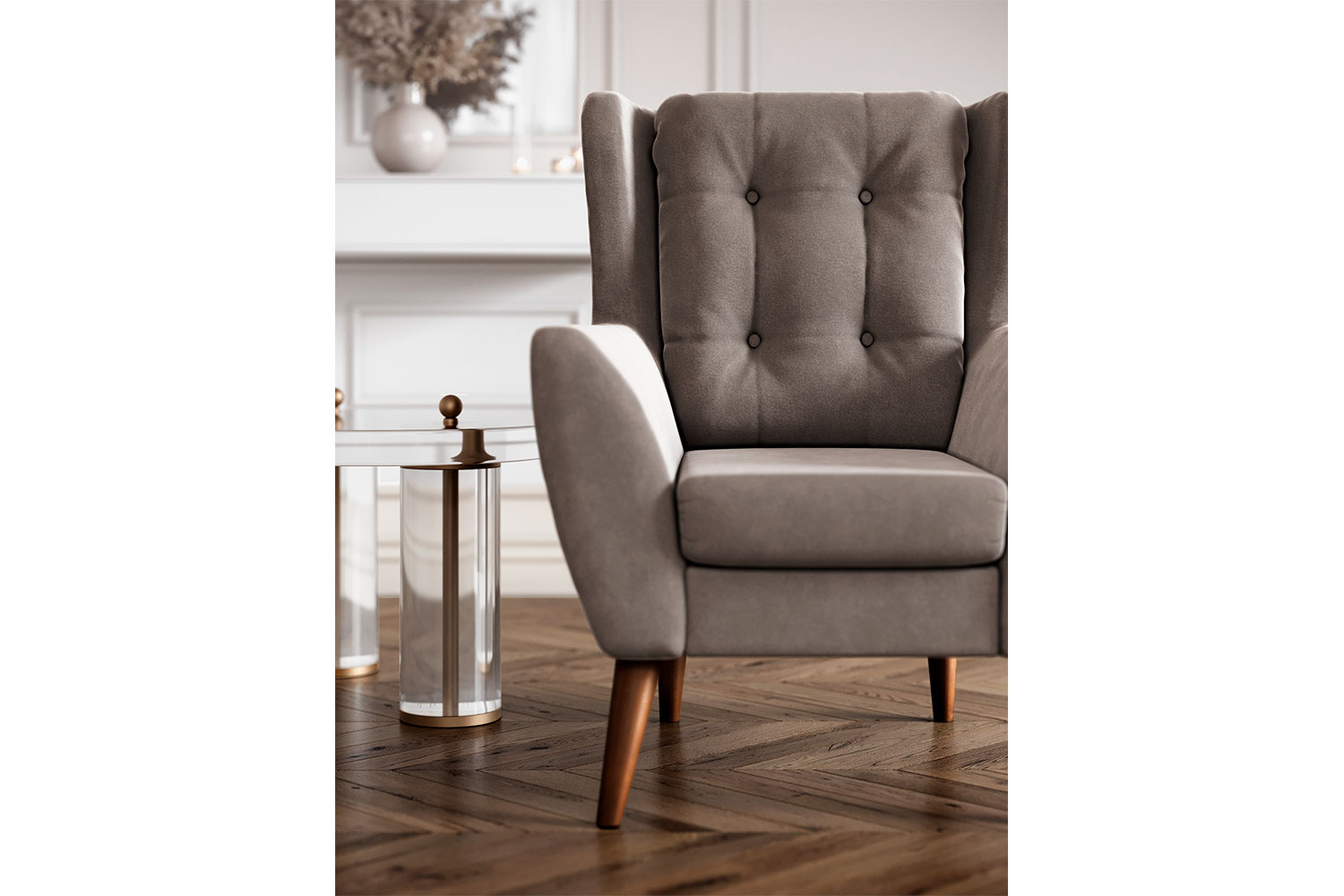 Дизайн изделия полностью отвечает требованиям английской классики. Высокая спинка, выступы в верхней части «wing chair», плавный переход к подлокотникам — каждая деталь в модели «Ладога» напоминает знаменитое вольтеровское кресло. Разнообразие цветовых решений в каталоге позволяет найти вариант, подходящий под любой интерьер — классический, в стиле сканди, лофт, минимализм, прованс.
