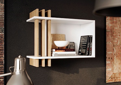 Полка настенная Онега Белый премиум, Дуб бунратти